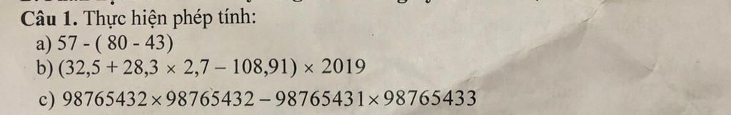 b) ( 32,5 + 28,3 x 2,7 - 108,91 ) x 2019