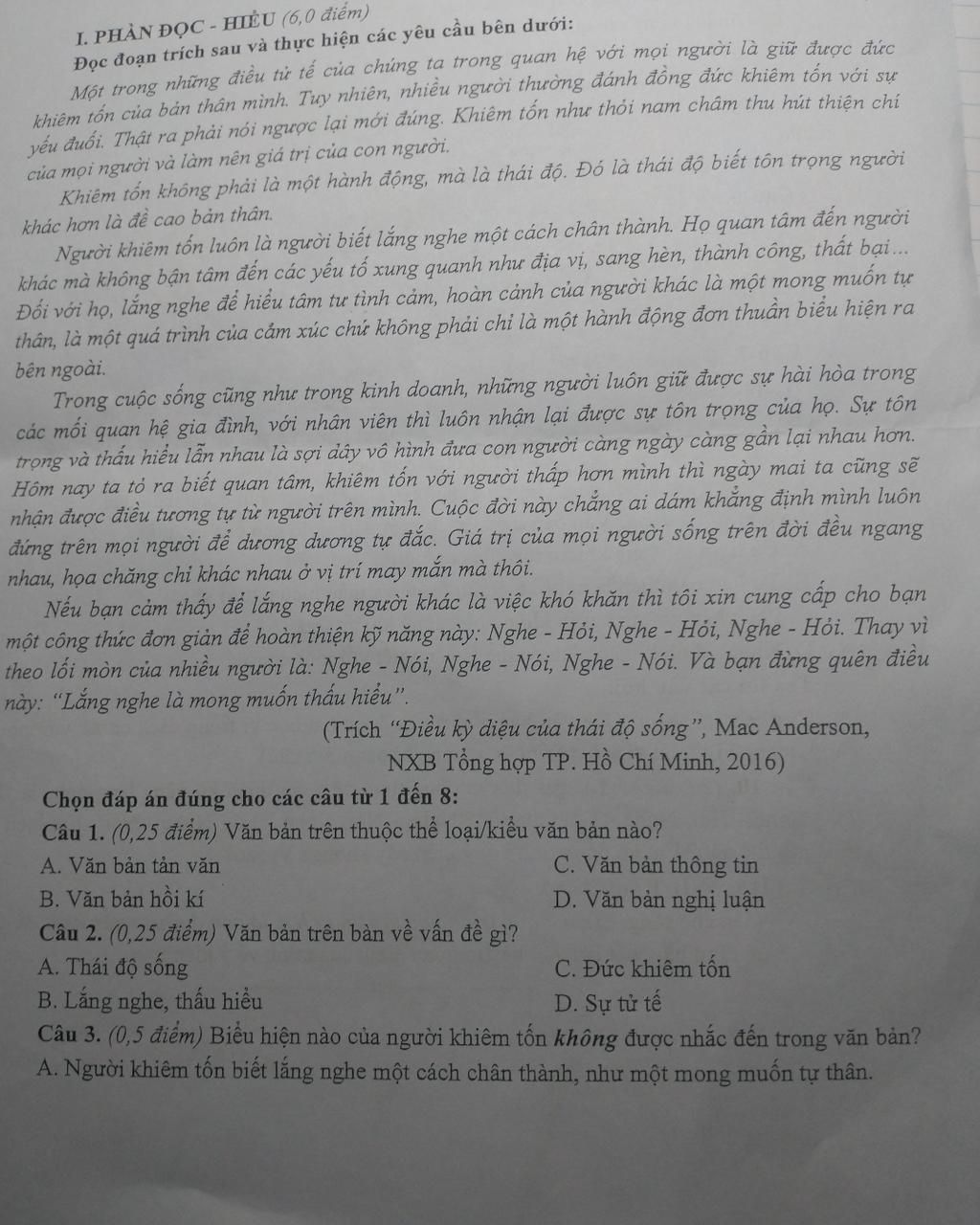 _ Đoạn văn trên là văn bản nghị luận, bàn về đức khiêm tốn trong đời sống. Nêu ra được đức khiêm tốn là quan trọng và cần thiết.