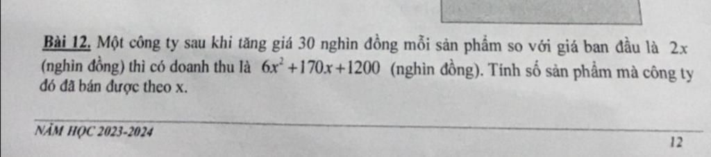 Vậy: Công ty đó đã bán được `3x + 40` sản phẩm theo `x`.