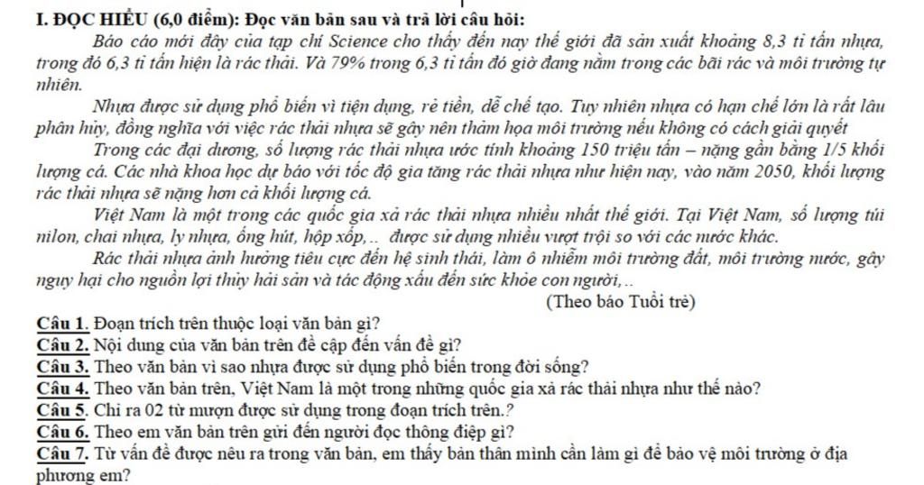 Câu 6: văn bản trên gửi đến người đọc thông điệp: Hãy hạn chế xả rác thải nhựa ra môi trường