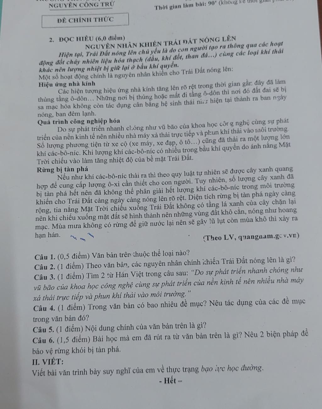 `-` ND chính của VB: Nguyên nhân khiến Trái Đất nóng lên