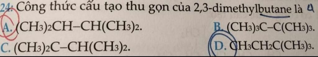 $-$ Số 2, 3-dimetyl chỉ có 2 nhóm methyl ở vị trí carbon số 2 và 3.