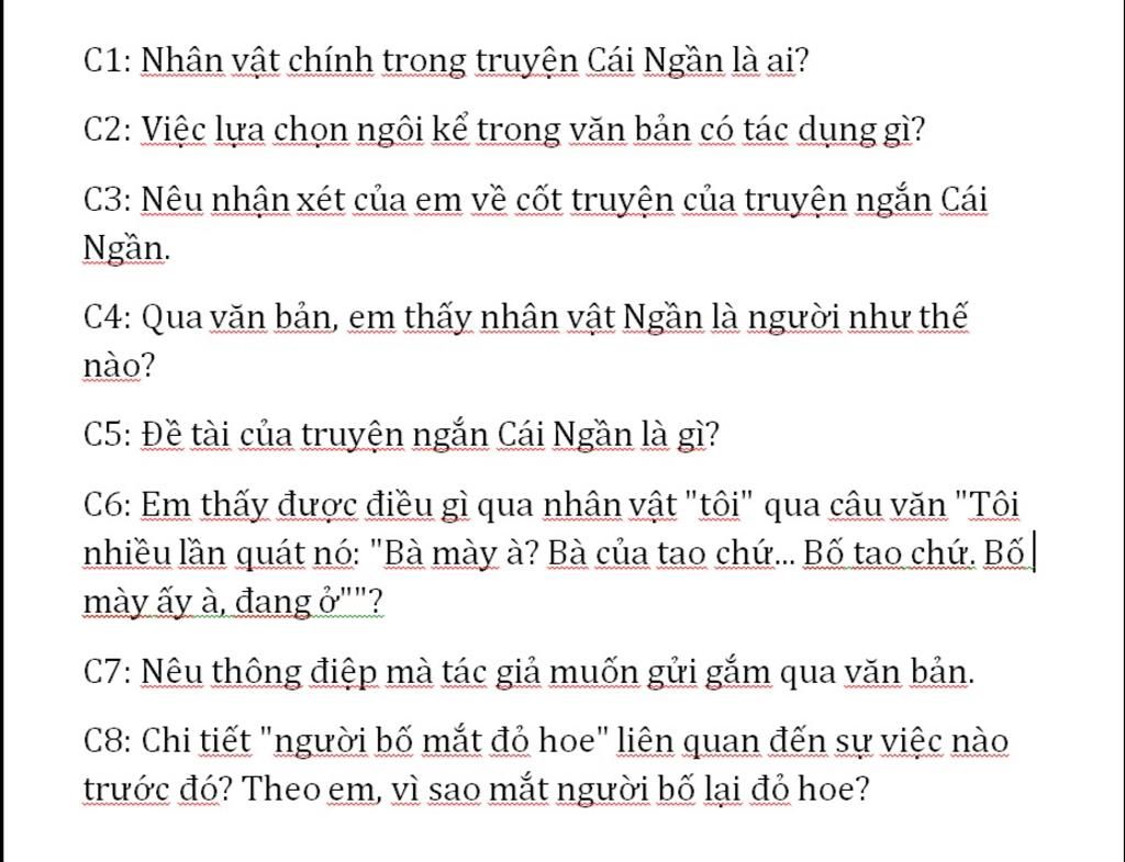 `-` Chi tiết liên quan đến sự việc: Cuộc trò chuyện của "tôi" và cái Ngần.