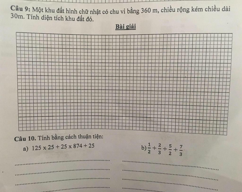 Nửa chu vi của khu đất hình chữ nhật đó là: $360 ÷ 2 = 180$ $(\text{m})$