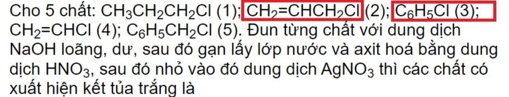 Theo đó, chất $ (1), (2), (5)$ phản ứng với $NaOH$ loãng, đun nóng còn chất $(3), (4)$ thì không.