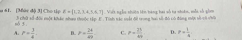 `=>overline(A)` là biến cố "không có số nào có chữ số 5"