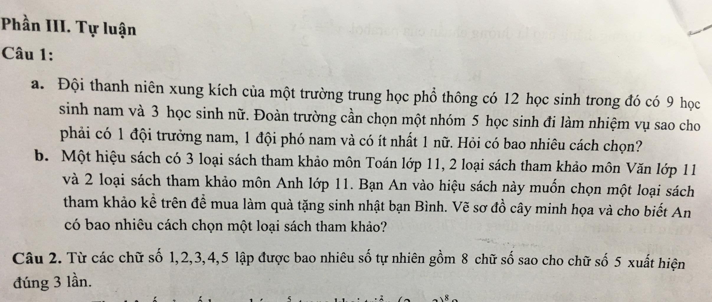 b.Từ sơ đồ cây $\to $An có $7$ cách chọn $1$ loại sách tham khảo