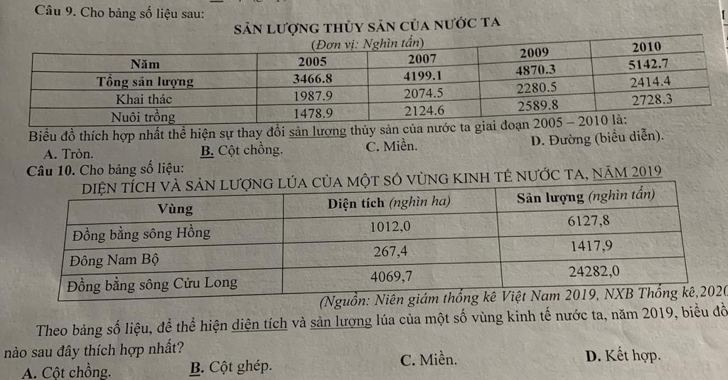 $*$ Câu `10` là biểu đồ kết hợp không phải biểu đồ cột ghép