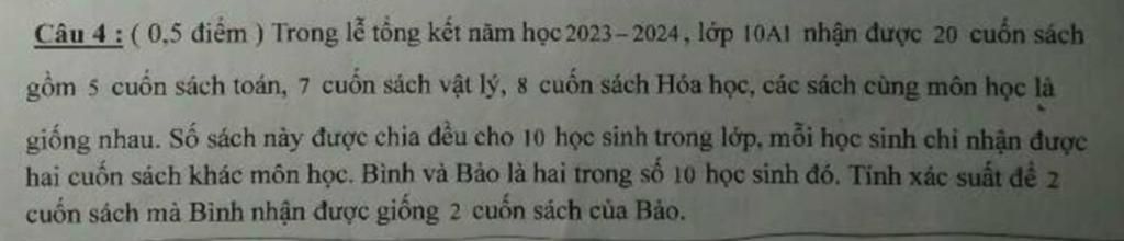 Như vậy xác suất để Bình nhận được 2 cuốn sách giống Bảo là: