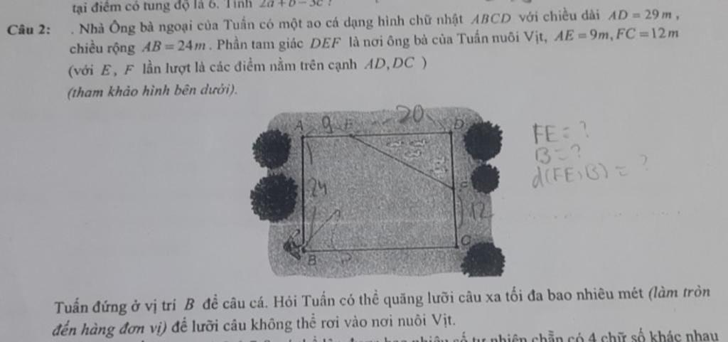 $\to$Tuấn có thể quăng lưỡi câu xa tối đa $\sqrt{985}m\approx 31(m)$