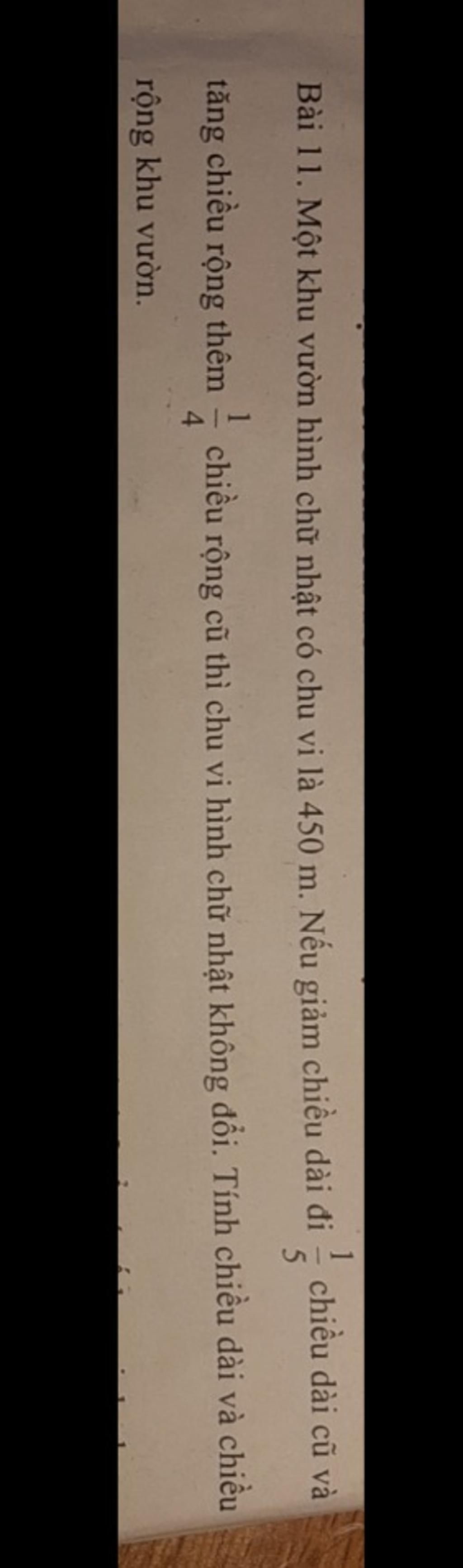 Chiều dài sau khi giảm là: `(225-x)-1/5(225-x)=4/5(225-x)(m)`
