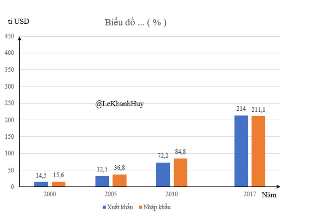 a, vẽ biểu đồ thể hiện gtri xuất nhập khẩu của nc ta giai đoạn 2000-2017.