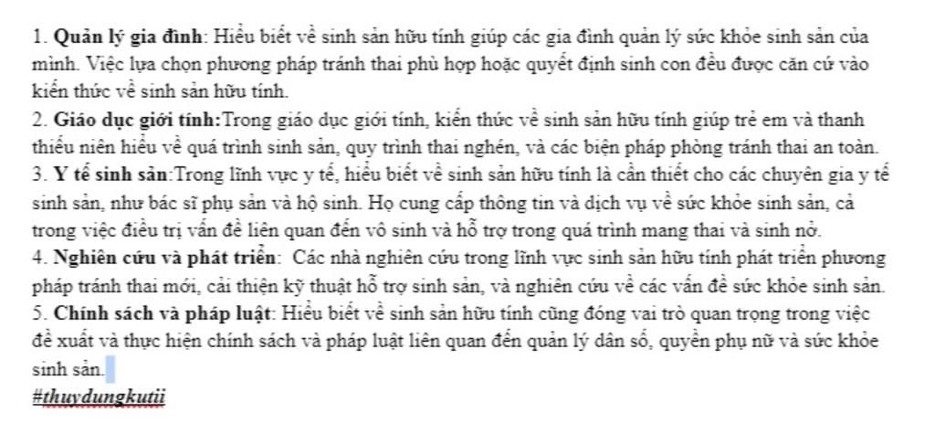 Các hiểu biết về sinh sản hữu tính trong thực tiễn và đời sống là: