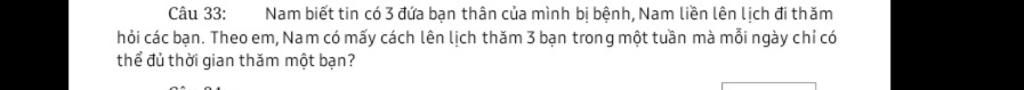 Xếp lịch để mỗi ngày đi thăm $1$ bạn có: