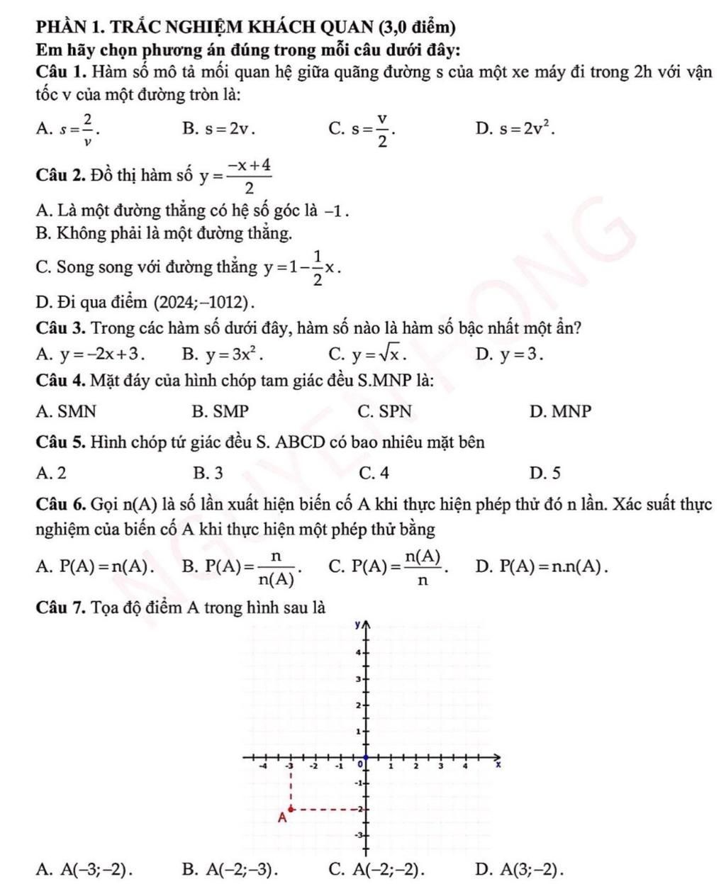 PHẦN 1. TRẮC NGHIỆM KHÁCH QUAN (3,0 điểm)