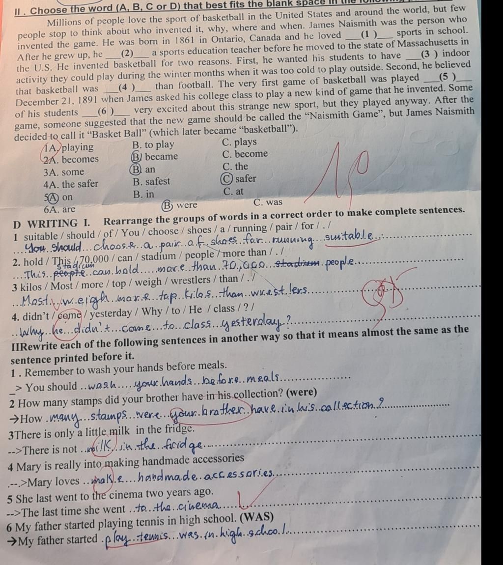 II. Choose the word (A, B, C or D) that best fits the blank space
