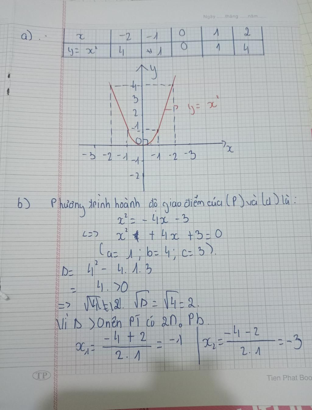 trên mặt phẳng tọa độ Oxy cho hai đồ thị parabol là y = x² và đường thẳng d: y = -4x - 3