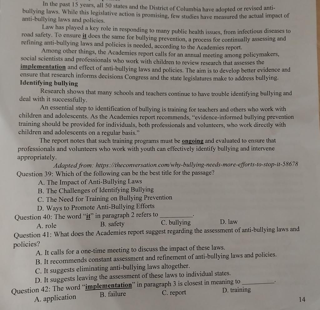anti-bullying laws and policies.
