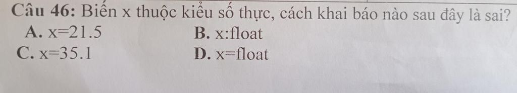 Đáp án :⇒ B.x:float
