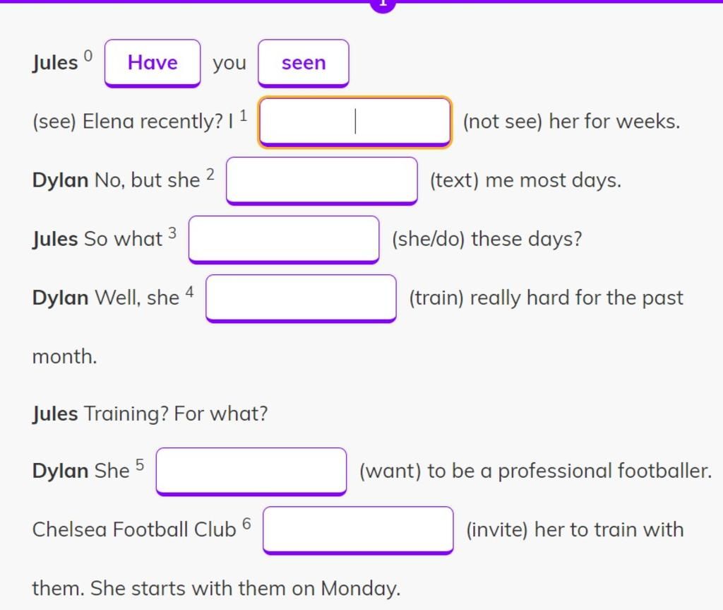 1. Đang ở Thì ( Hiện Tại Hoàn Thành ), gợi ý ( not see ) mà ở đây đang ở Hiện Tại Hoàn Thành nên ta cũng phải trả lời theo Thì Hiện Tại Hoàn Thành là "haven't seen".