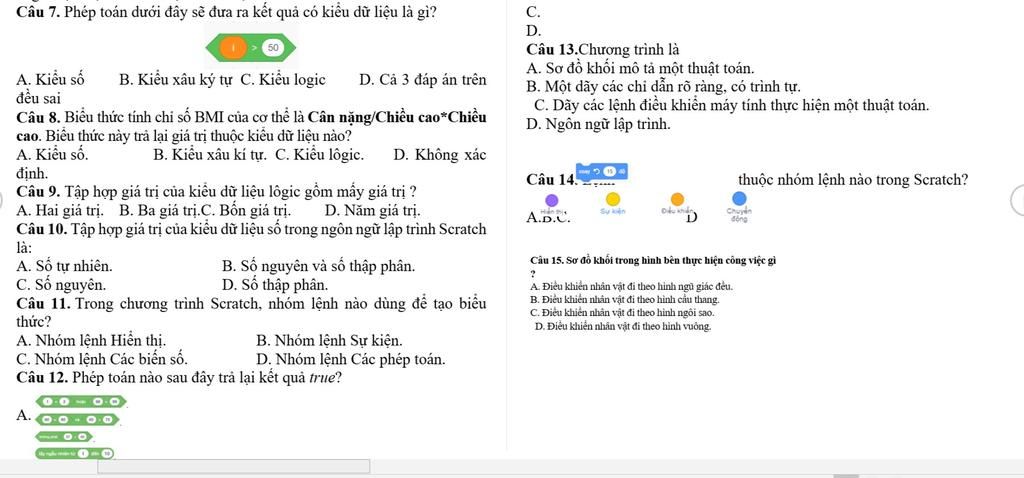 Câu 11. Trong chương trình Scratch, nhóm lệnh nào dùng để tạo biểu thức?