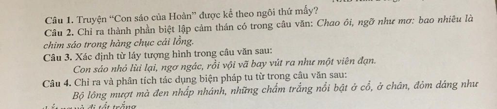 `-` Truyện ''Con sáo của Hoàn'' được kể theo ngôi thứ ba.