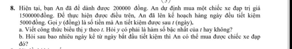 b) Hỏi sau bao nhiêu ngày kể từ lúc bắt đầu tiết kiệm thì An coa thể mua đc chiếc xe đạp đó ?