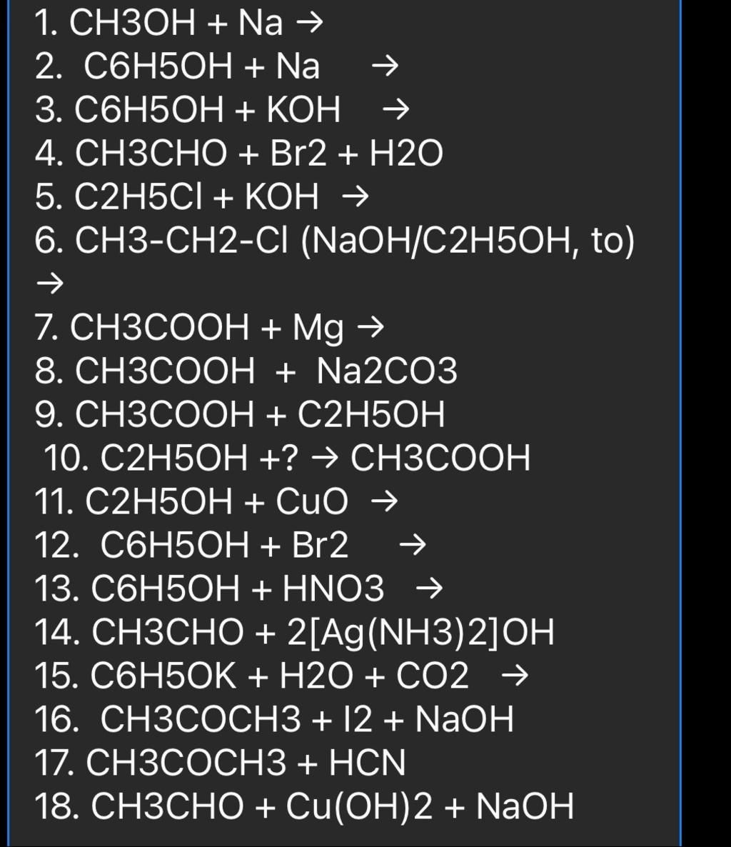 9. CH3COOH + C2H5OH