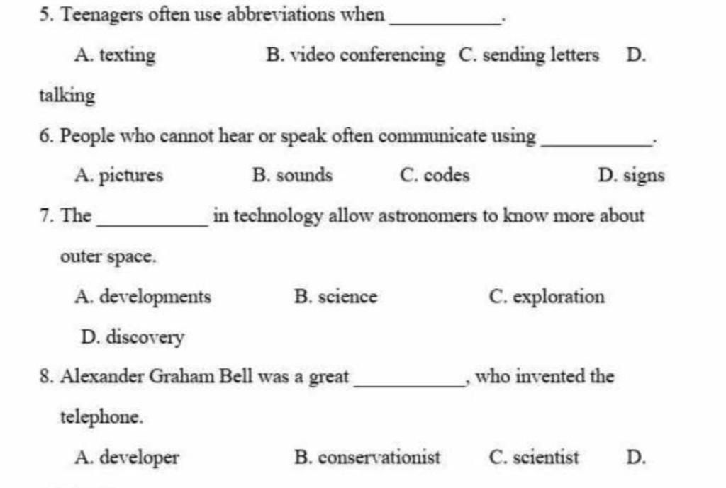 `-` Dựa vào từ (abbreviations ~ sự viết tắt) và nghĩa: Thanh thiếu niên thường sử dụng chữ viết tắt khi nhắn tin.