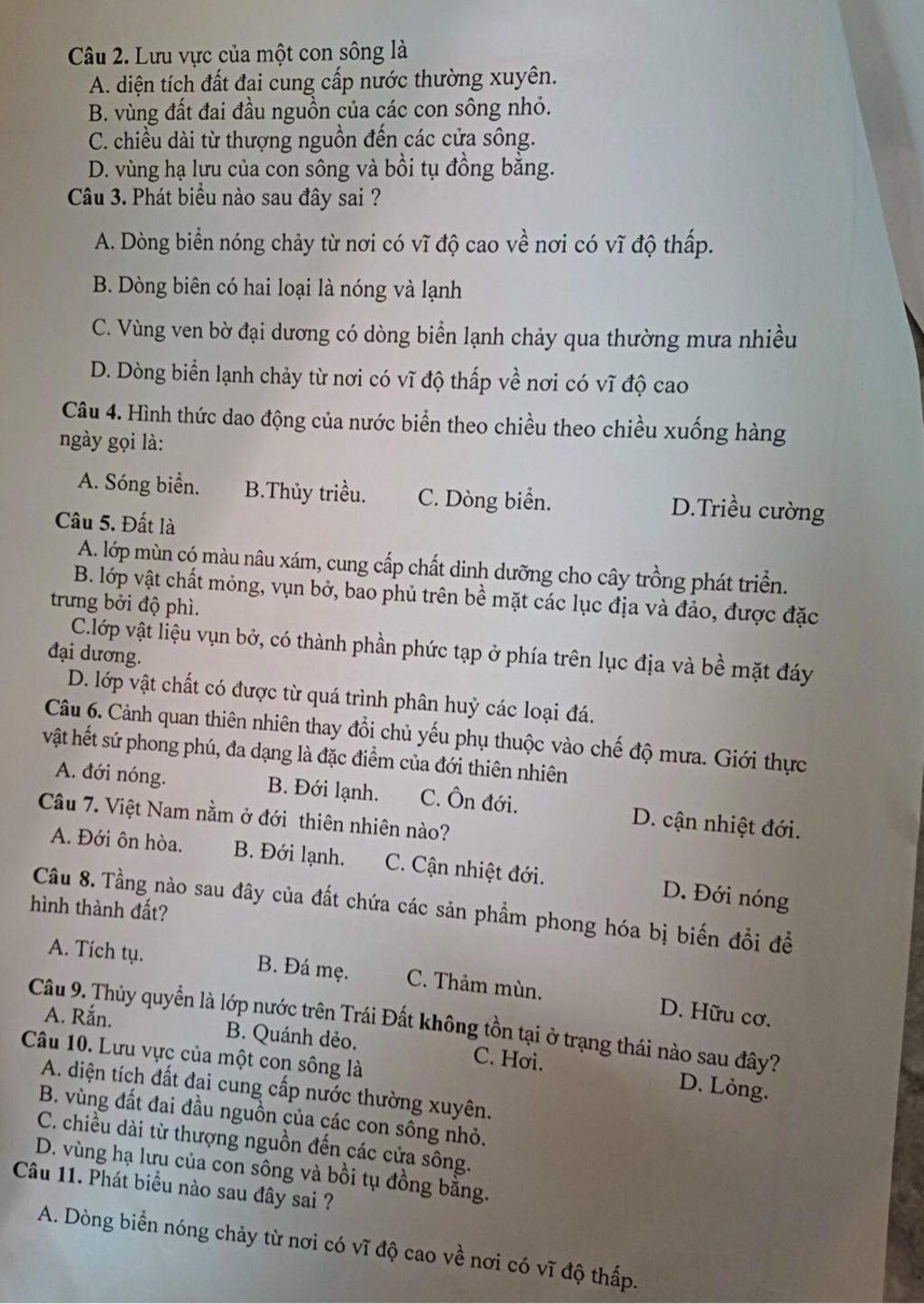 `->` Thủy quyển là lớp nước trên Trái Đất không tồn tại ở trạng thái quánh dẻo.