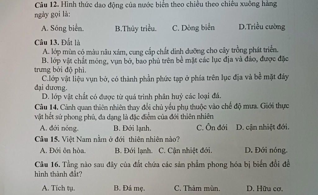 Câu 15: Việt Nam nằm ở vị trí nào? B. Đới nóng