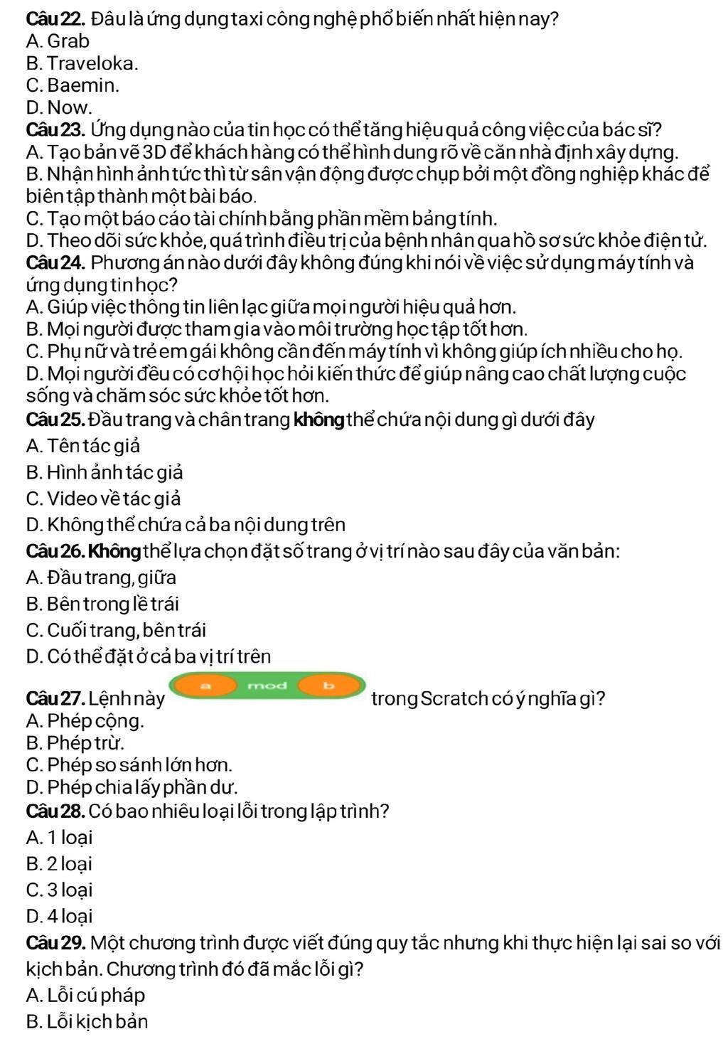 Câu22. Đâu là ứng dụng taxi công nghệ phổ biến nhất hiện nay?