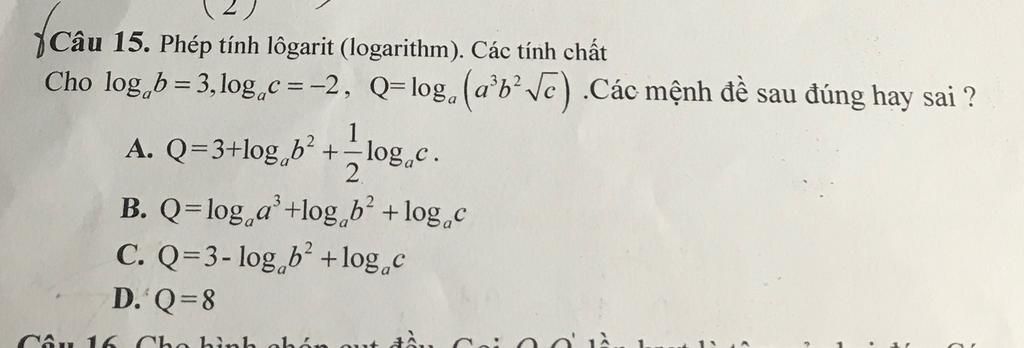 `Q=log_a(a^3.b^2 . sqrtc)`