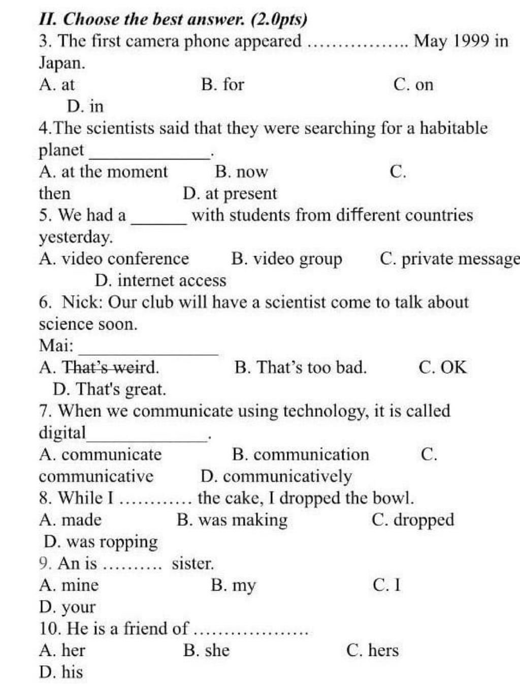 Digital (adj) : Điện tử => Cần một N trước nó => B