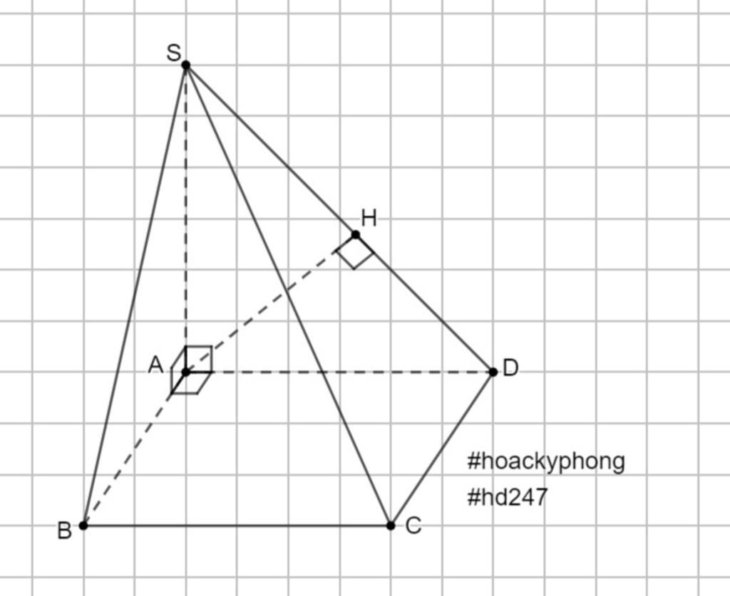 · Ta có : CD ⊥ AD , CD ⊥ SA ⇒ CD ⊥AH