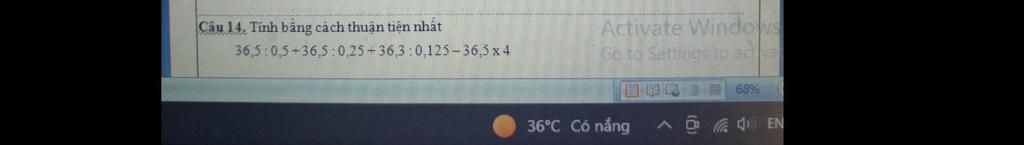 `36,5 : 0,5+36,5 : 0,25+36,3 : 0,125-36,5 xx 4`