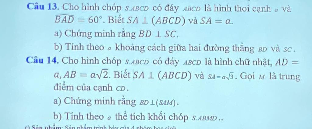 a) Chứng minh rằng BD L SC.