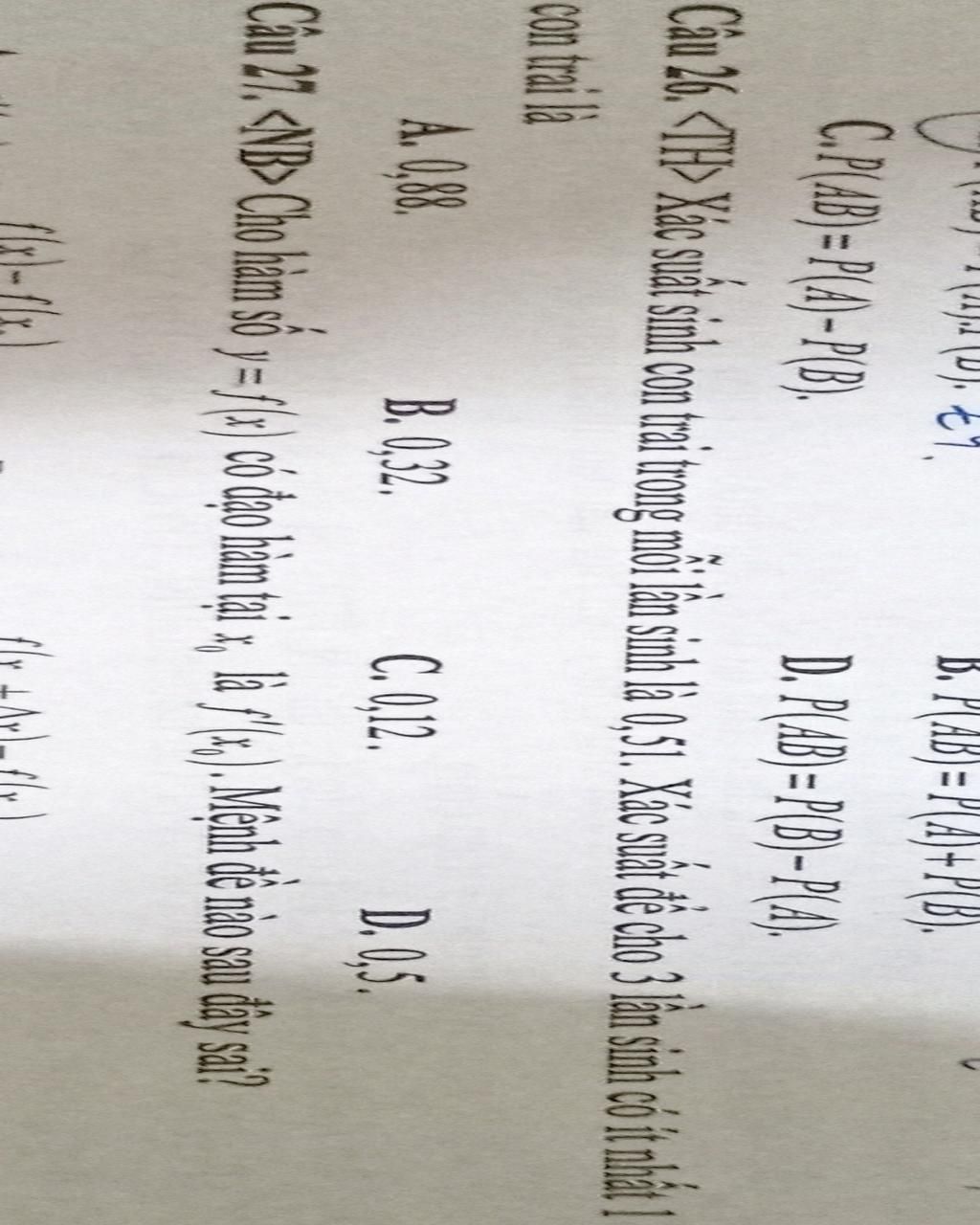 Câu 46. TH> Xác suất sinh con tại trong mỗi lần sinh là 0,5). Xác suất để cho 3 lần sinh có t nhất 1
