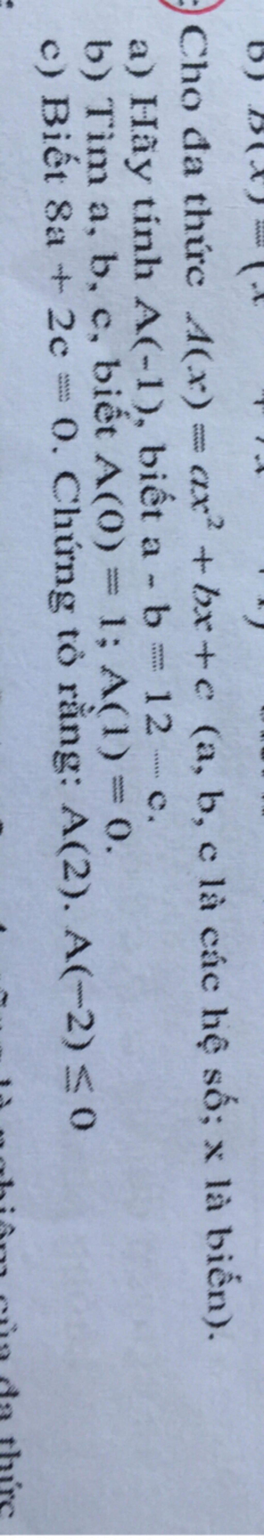b) Thay `x = 0` vào `A(x)`, ta được: