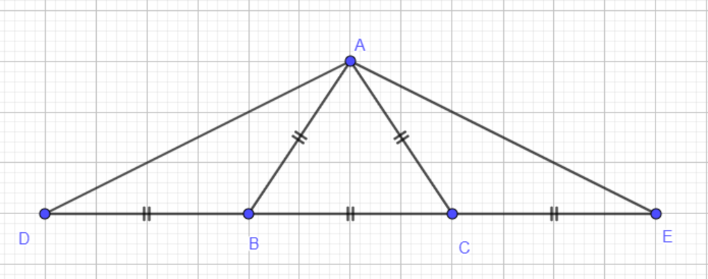 $\Rightarrow \Delta ADE$ là tam giác cân đỉnh $A$