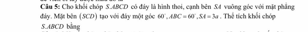 Thể tích khối chóp $SABCD$ là: