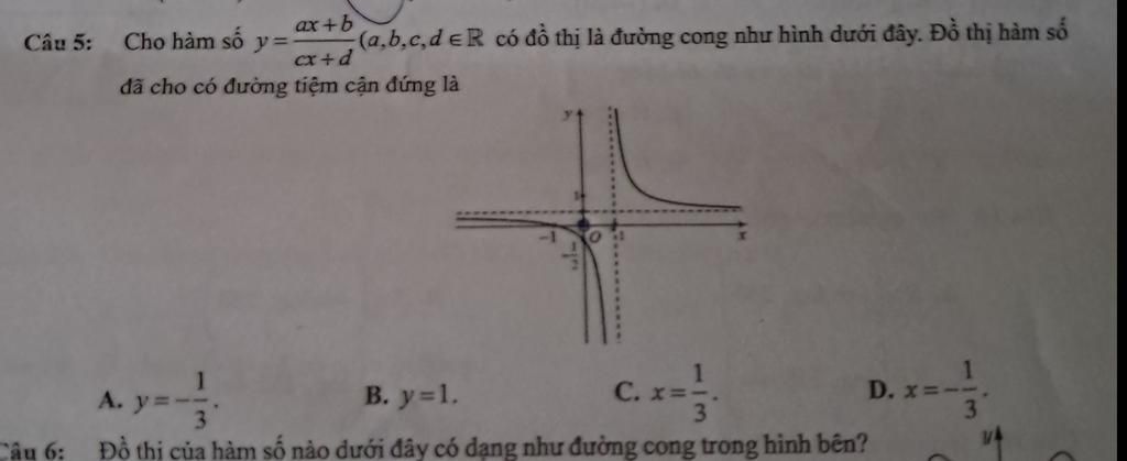 Từ đồ thị $\to x=-1$ là tiệm cận đứng của hàm số