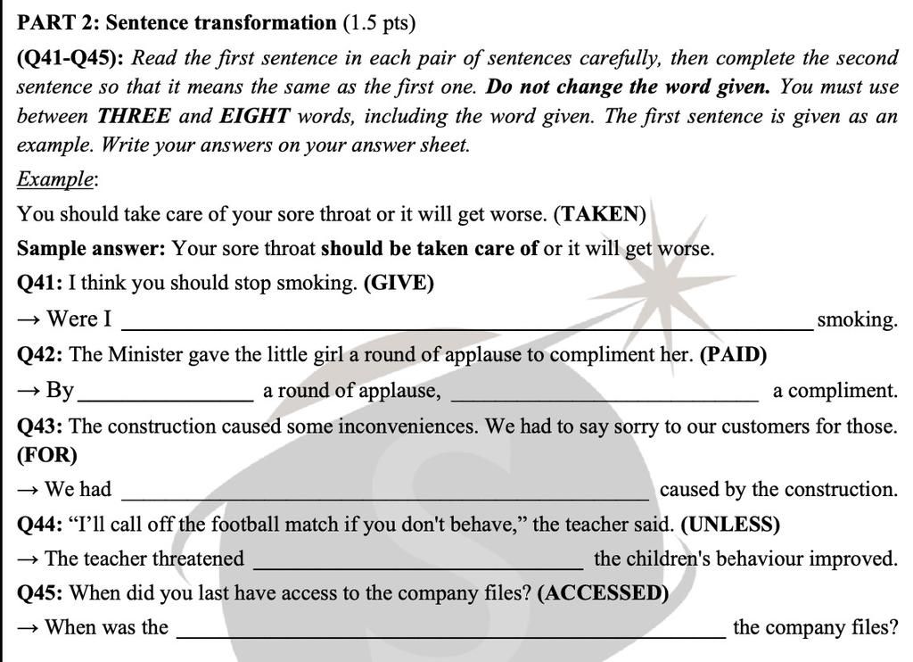 PART 2: Sentence transformation (1.5 pts)