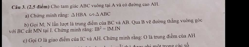 b.Ta có: $M, N$ là trung điểm $BC, BA\to MN$ là đường trung bình $\Delta ABC\to MN//AC$