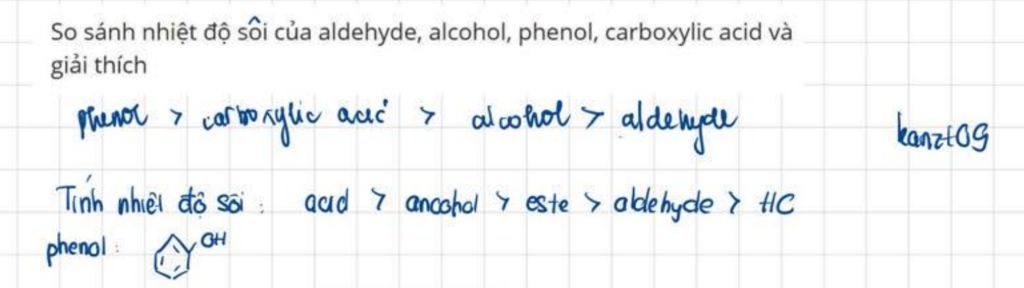 So sánh nhiệt độ soi của aldehyde, alcohol, phenol, carboxylic acid và giải thích