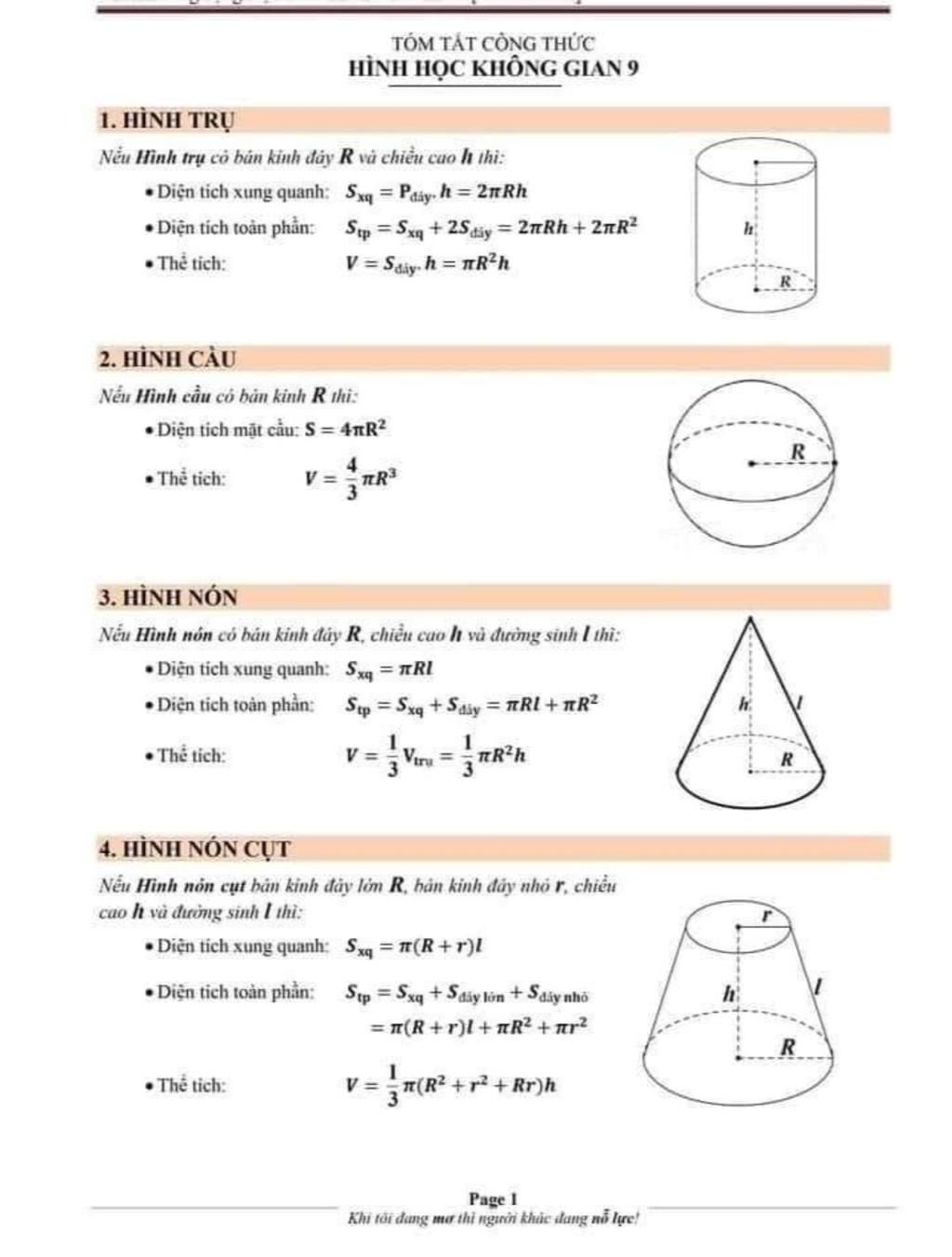 Nếu Hình trụ cơ bản kinh đáy R và chiều cao h thì: