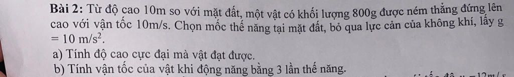 a, Gọi `h_(max)` là độ cao cực đại mà vật đạt được.