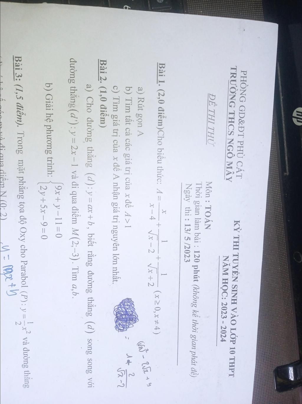 Bài 1. (2,0 điểm)Cho biểu thức: A=