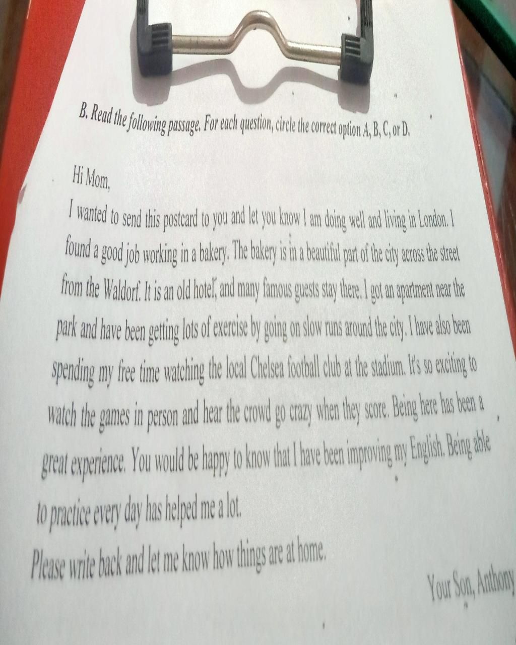 38. Anthony sent a postcard to his mom ...