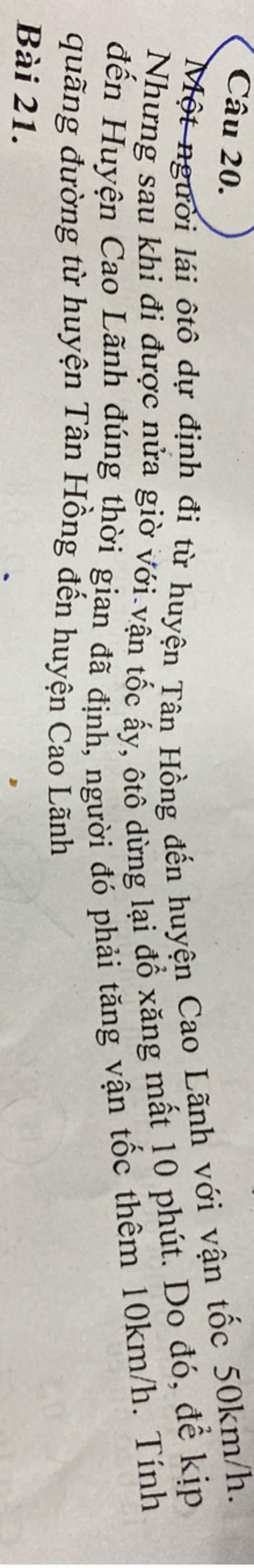 Gọi `x(km)` là quãng đường từ huyện Tân Hồng đến huyện Cao Lãnh. (`x > 0`)